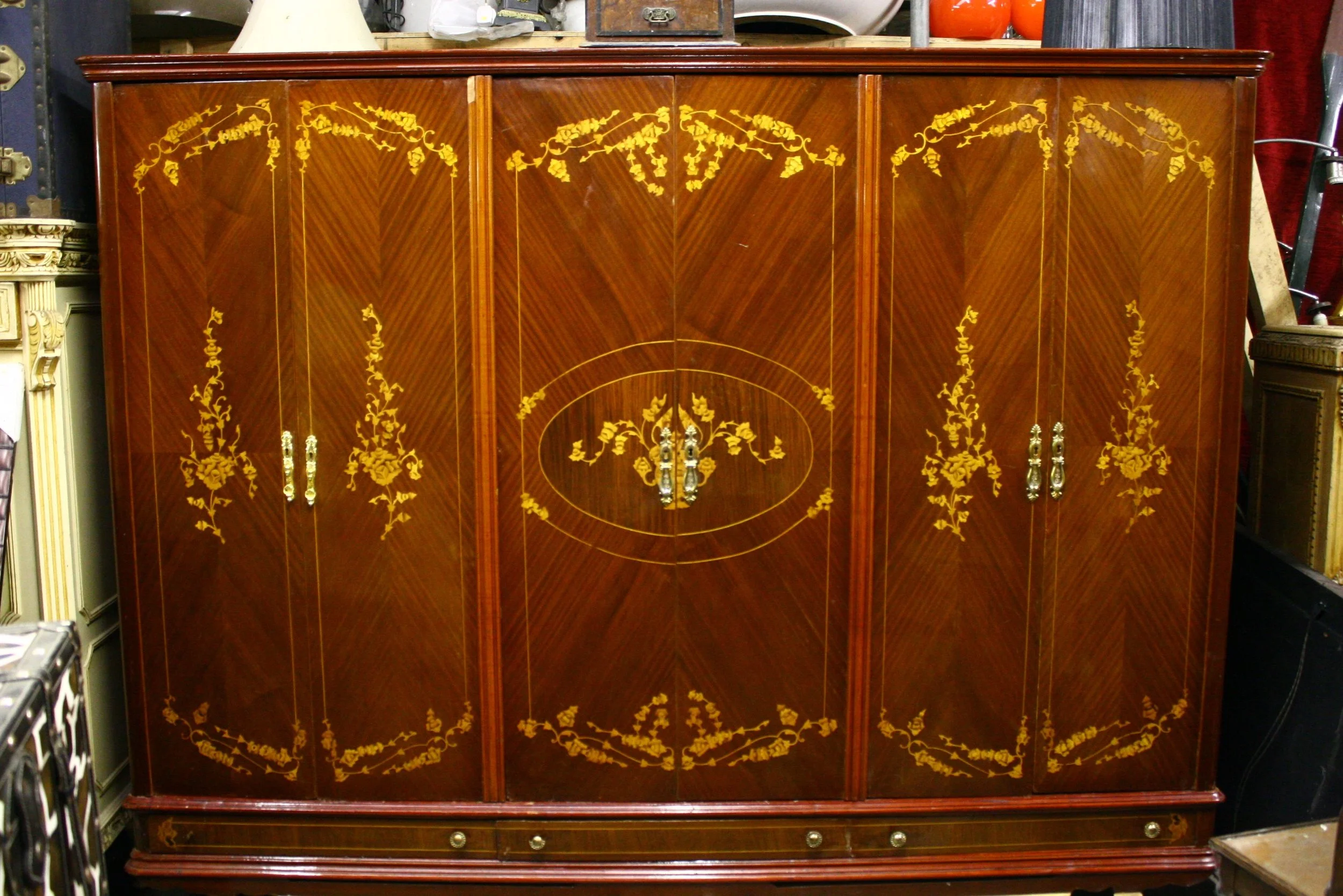 Old inlaid wardrobe in good condition except for a small chip on the top right of the first two doors