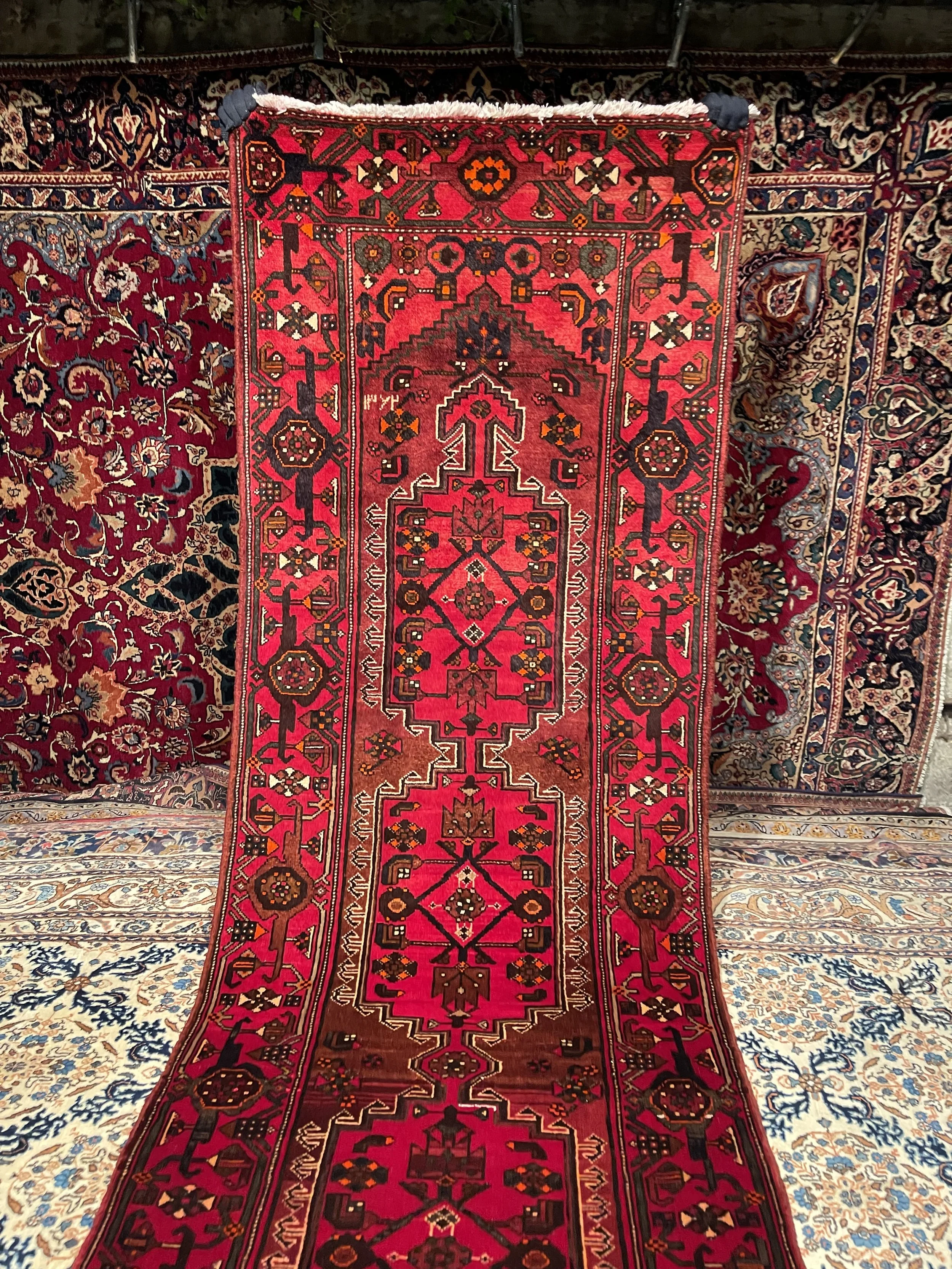 Finely woven for village Persian carpets, the best Malayer carpets were woven in the village of Mishin, and use a lustrous, resilient wool and subtle, mesmerizing, repeating patterns. Many of the weavers were of ethnic Turkish stock and the “Ghiordes” or symmetric knot was used in all Malayer carpets