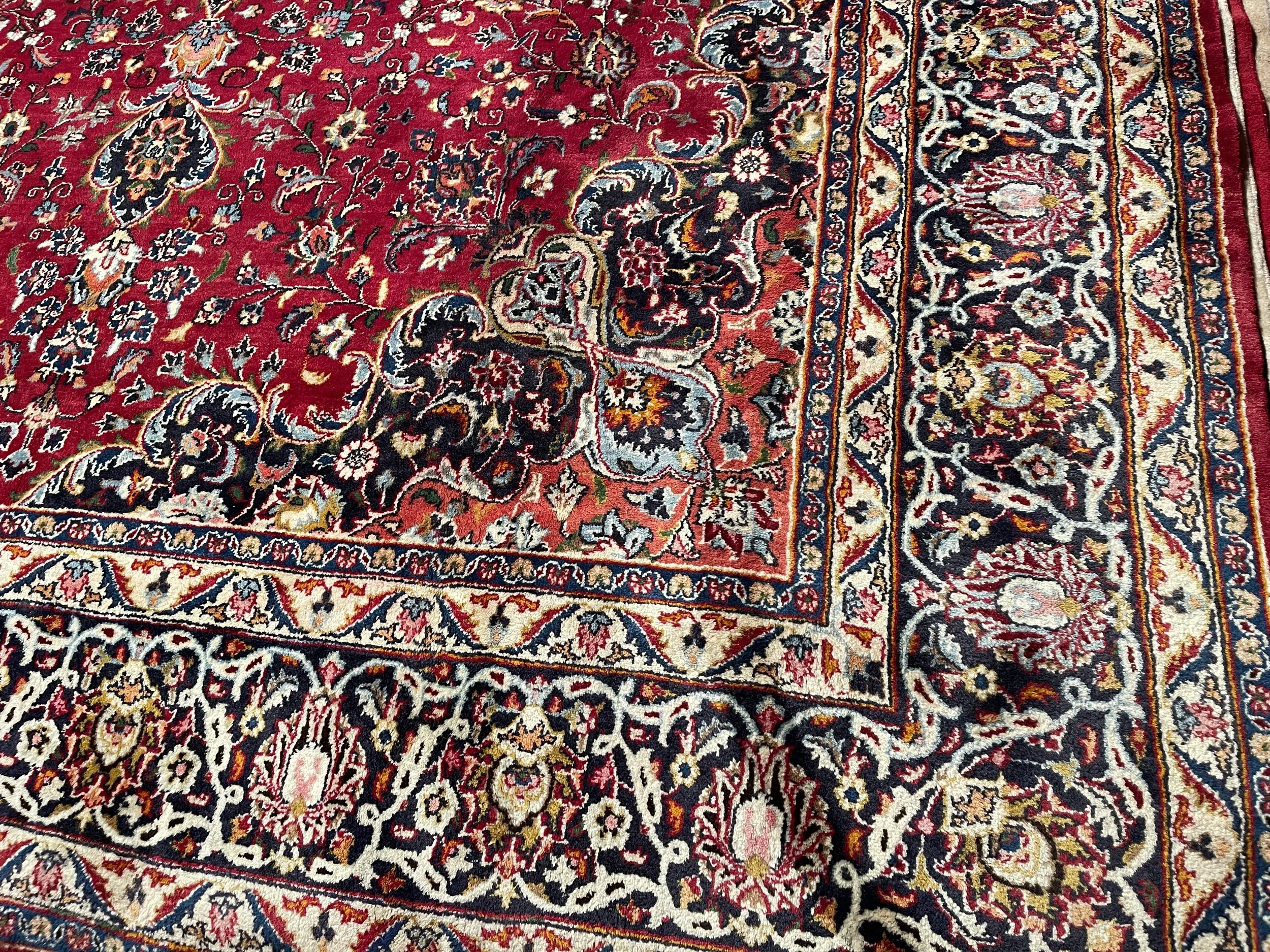 This is a large hand knotted Persian carpet. It has good pile and no wearing great colours