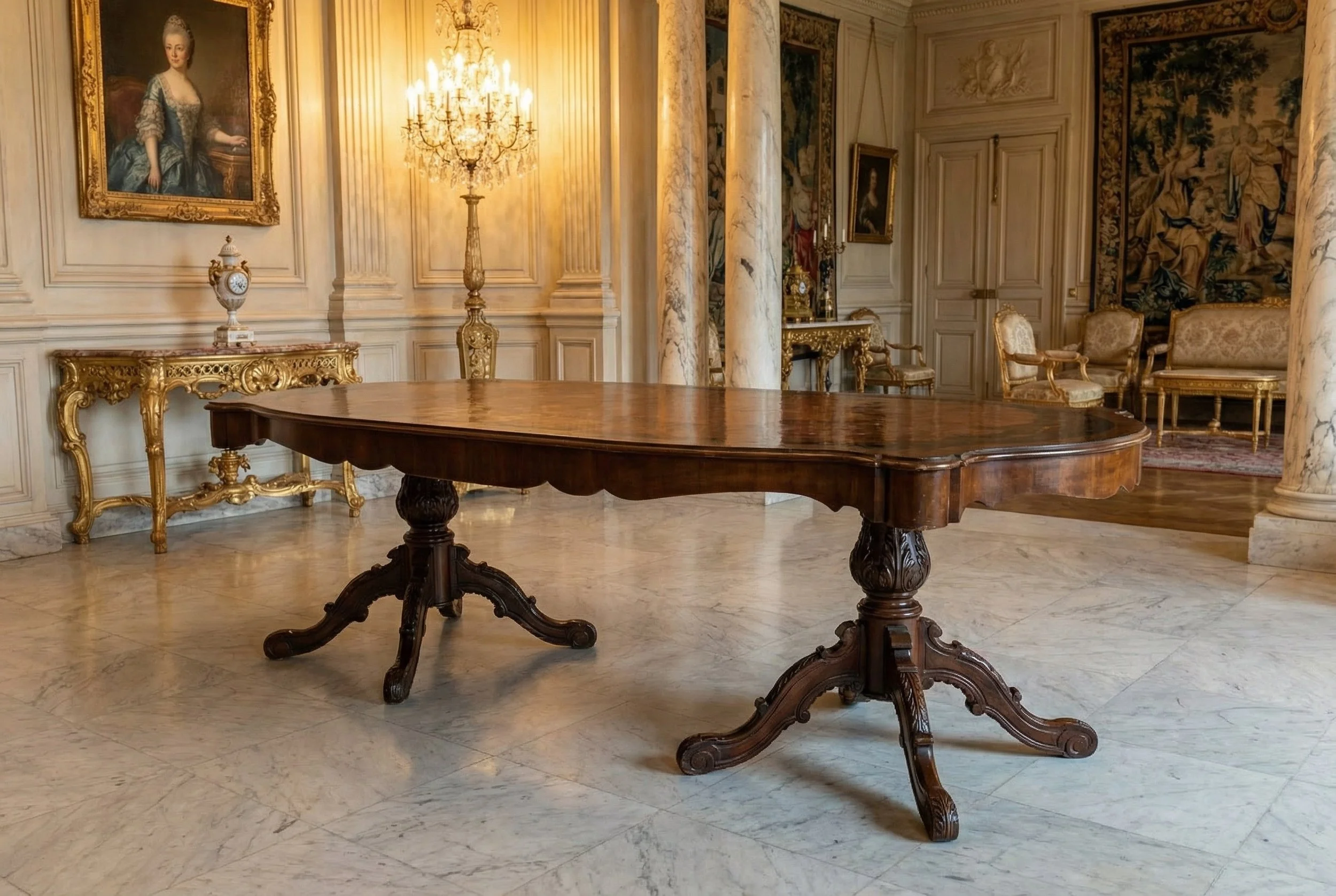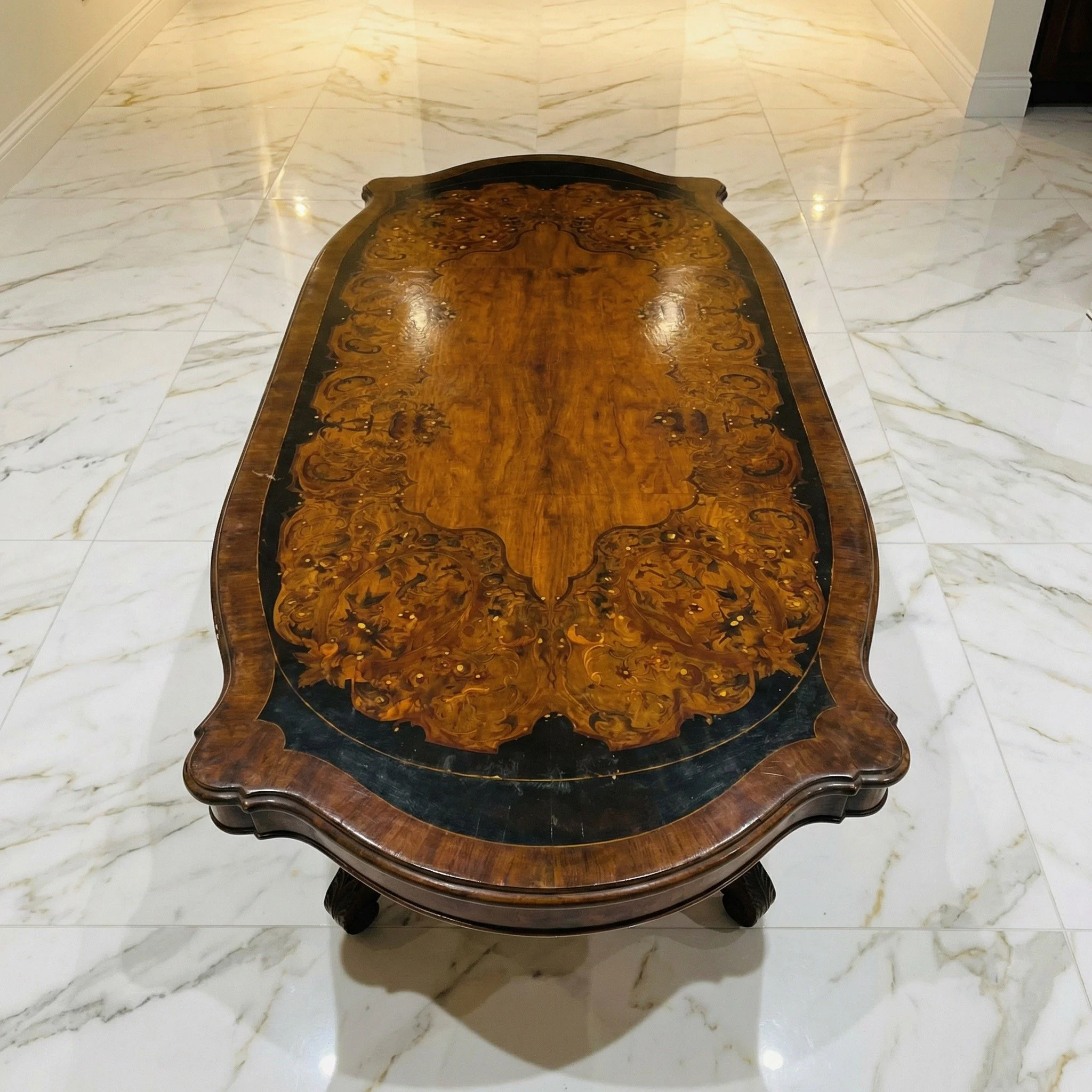 Large inlaid dining table with mother of pearl