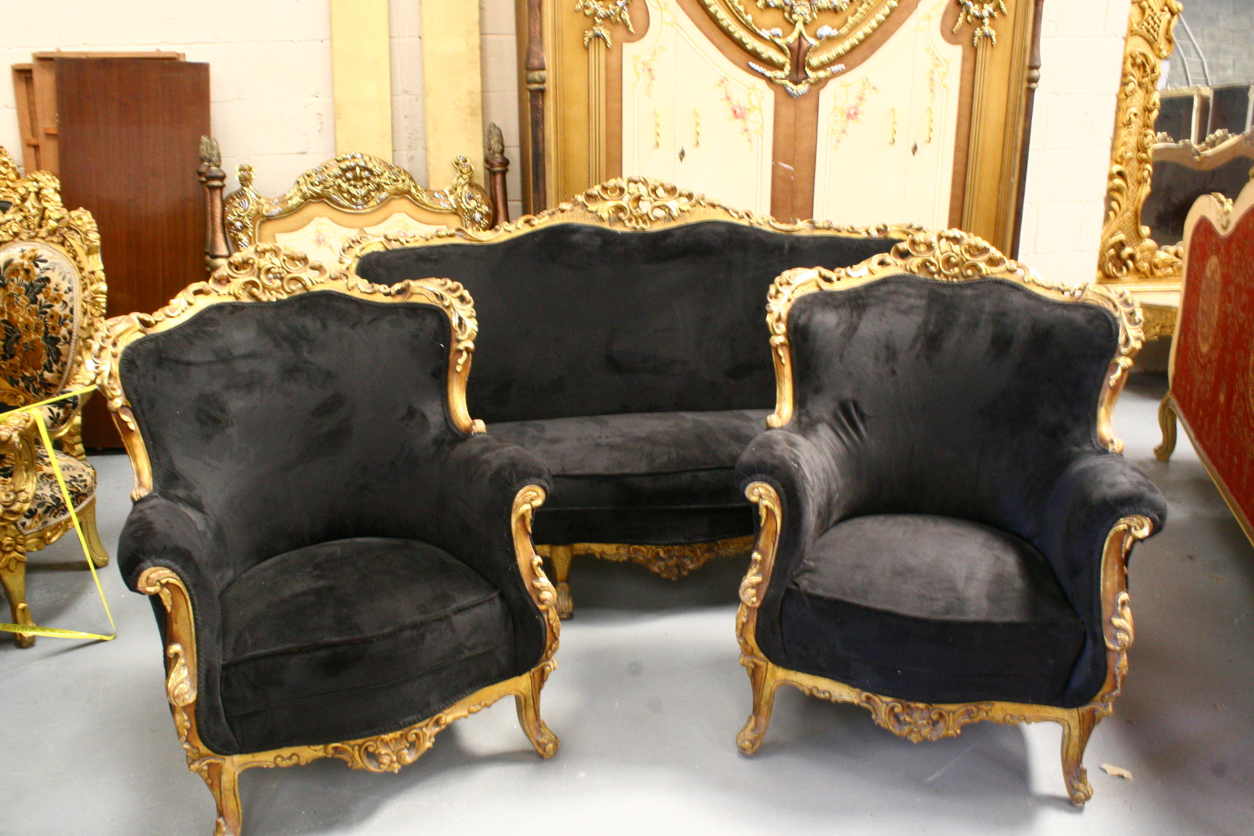 Antique Salon set including sofa and armchairs this set has been re-guilded and recovered